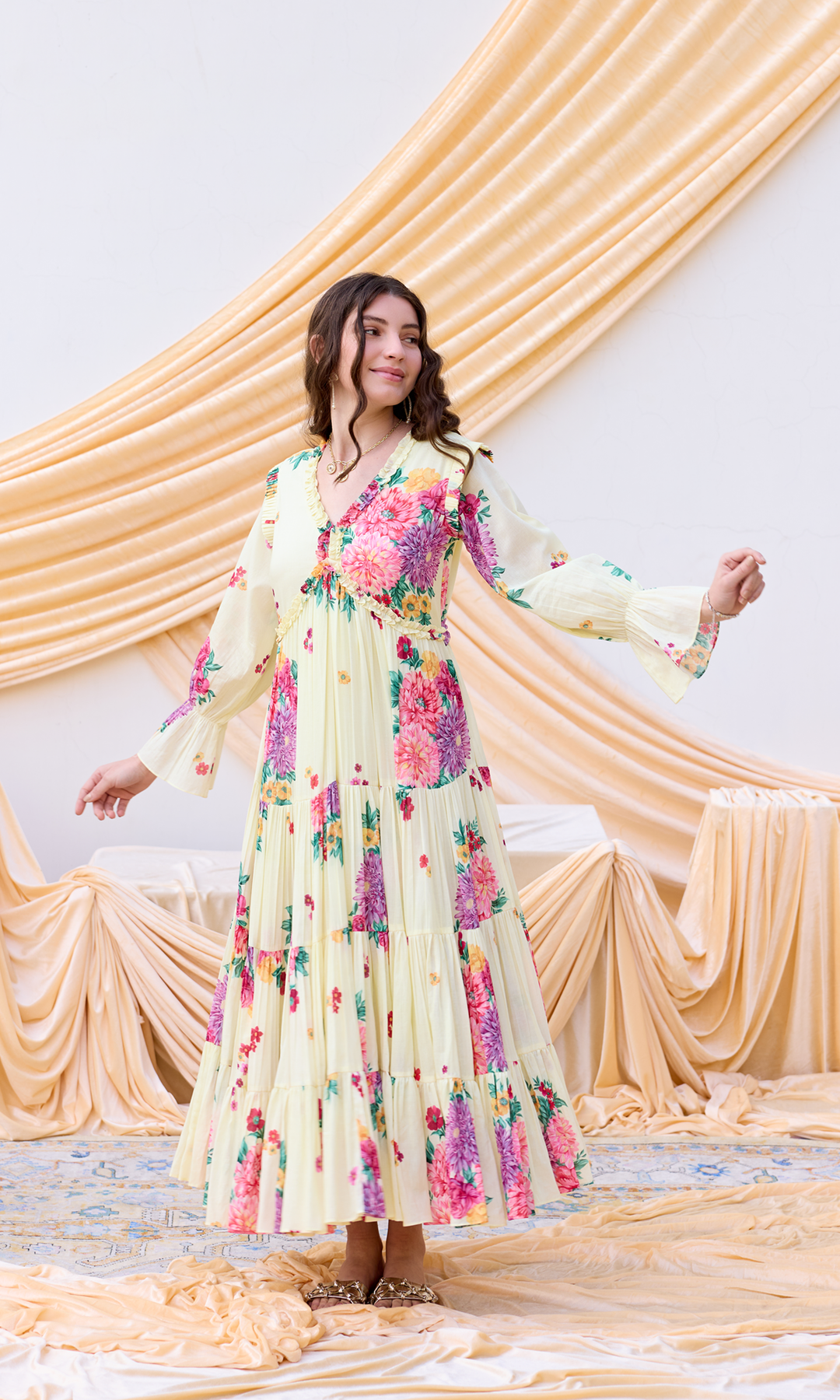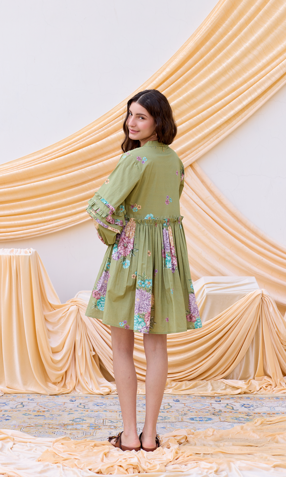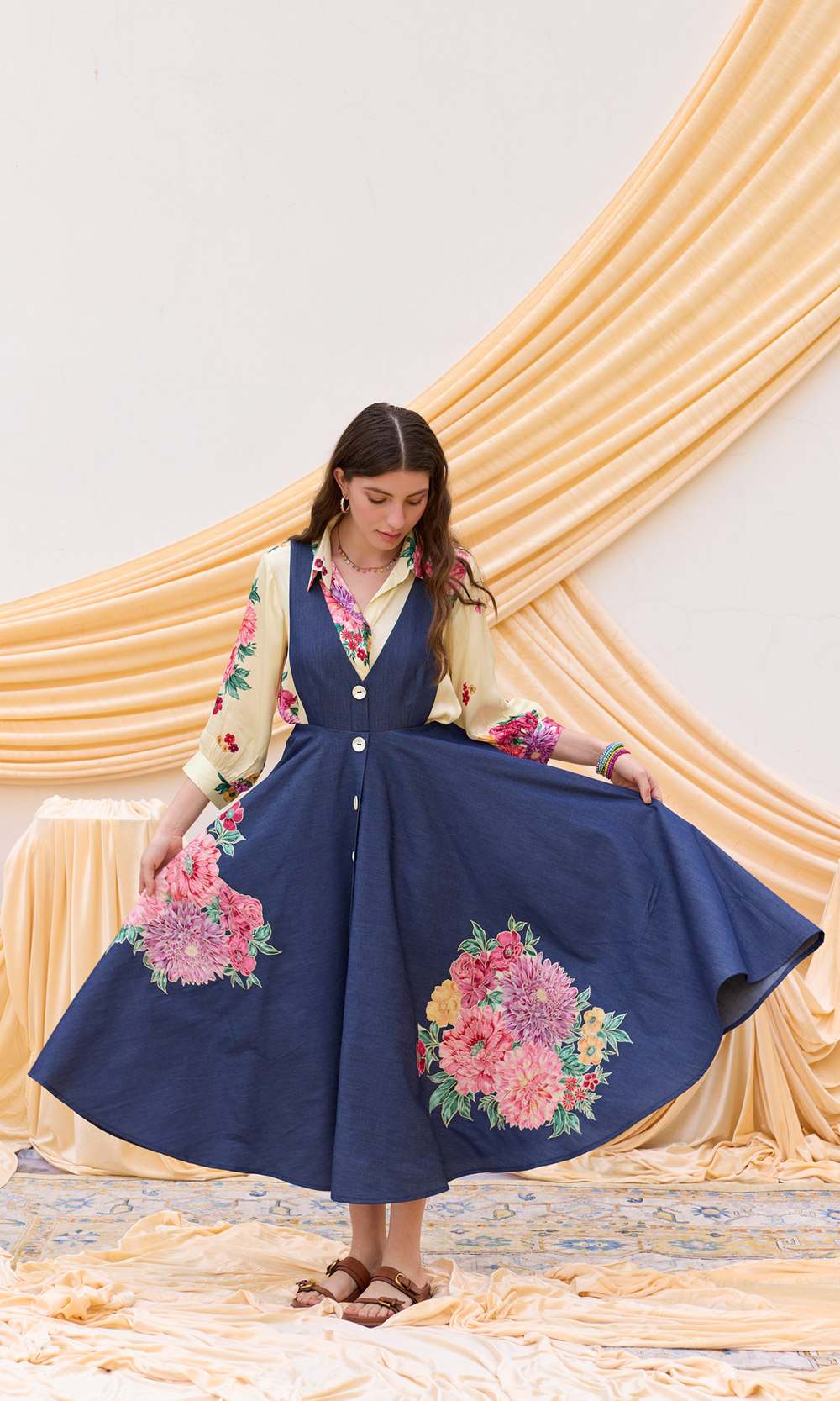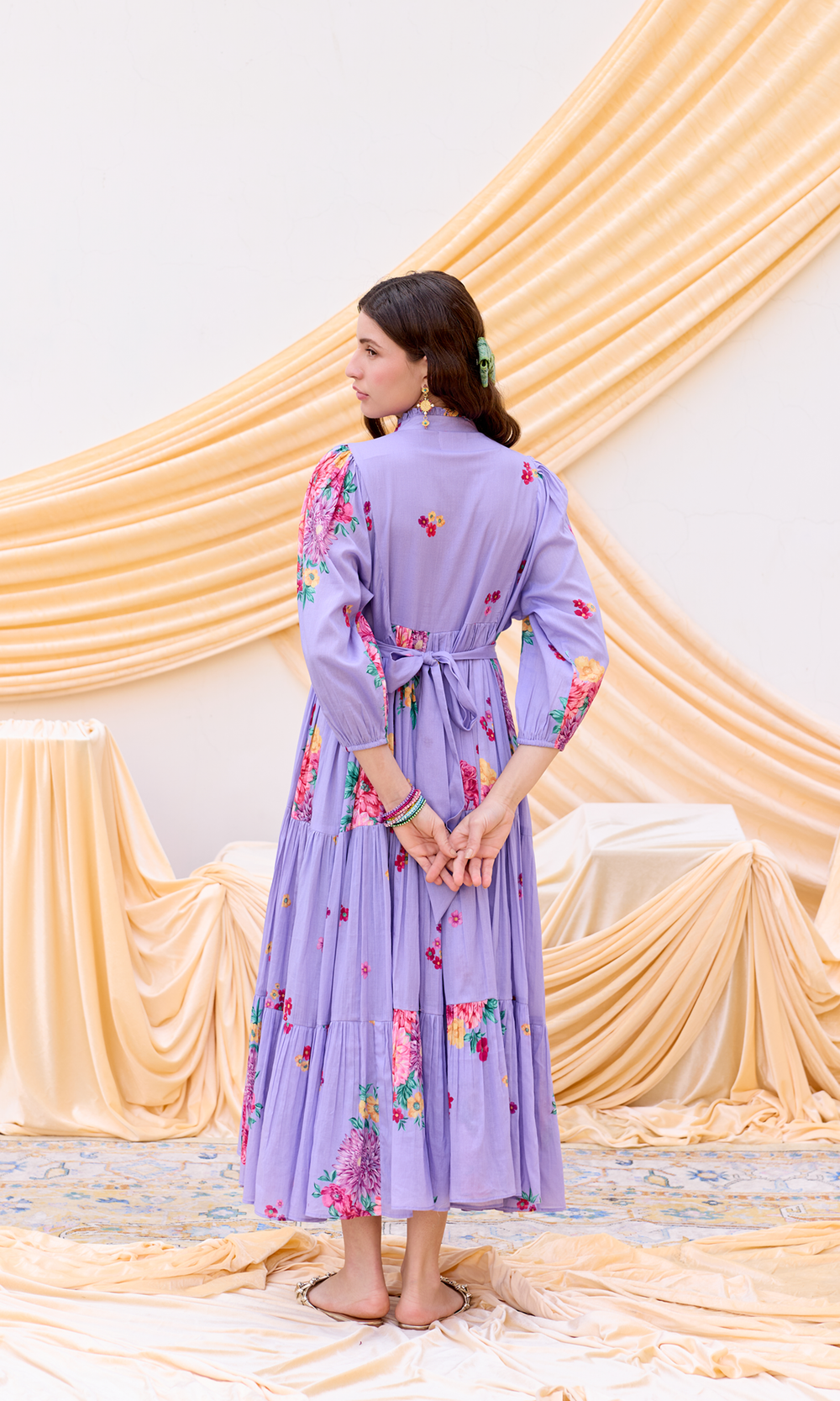 Daphne- Digitally Printed Floral Embroidered Cotton Dress