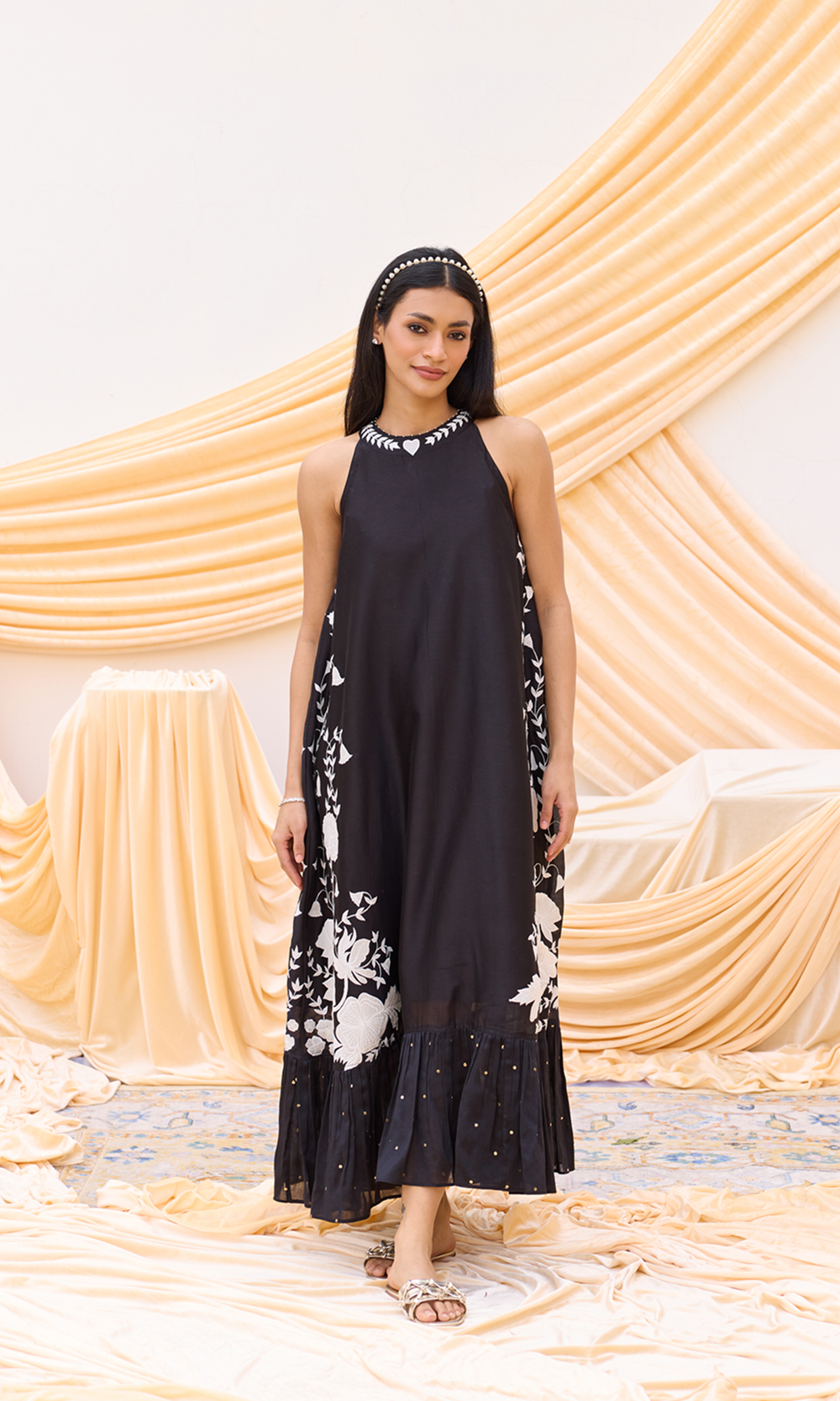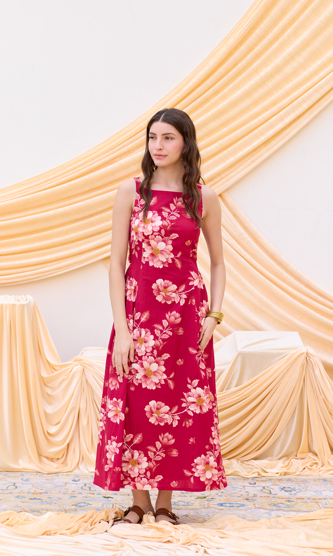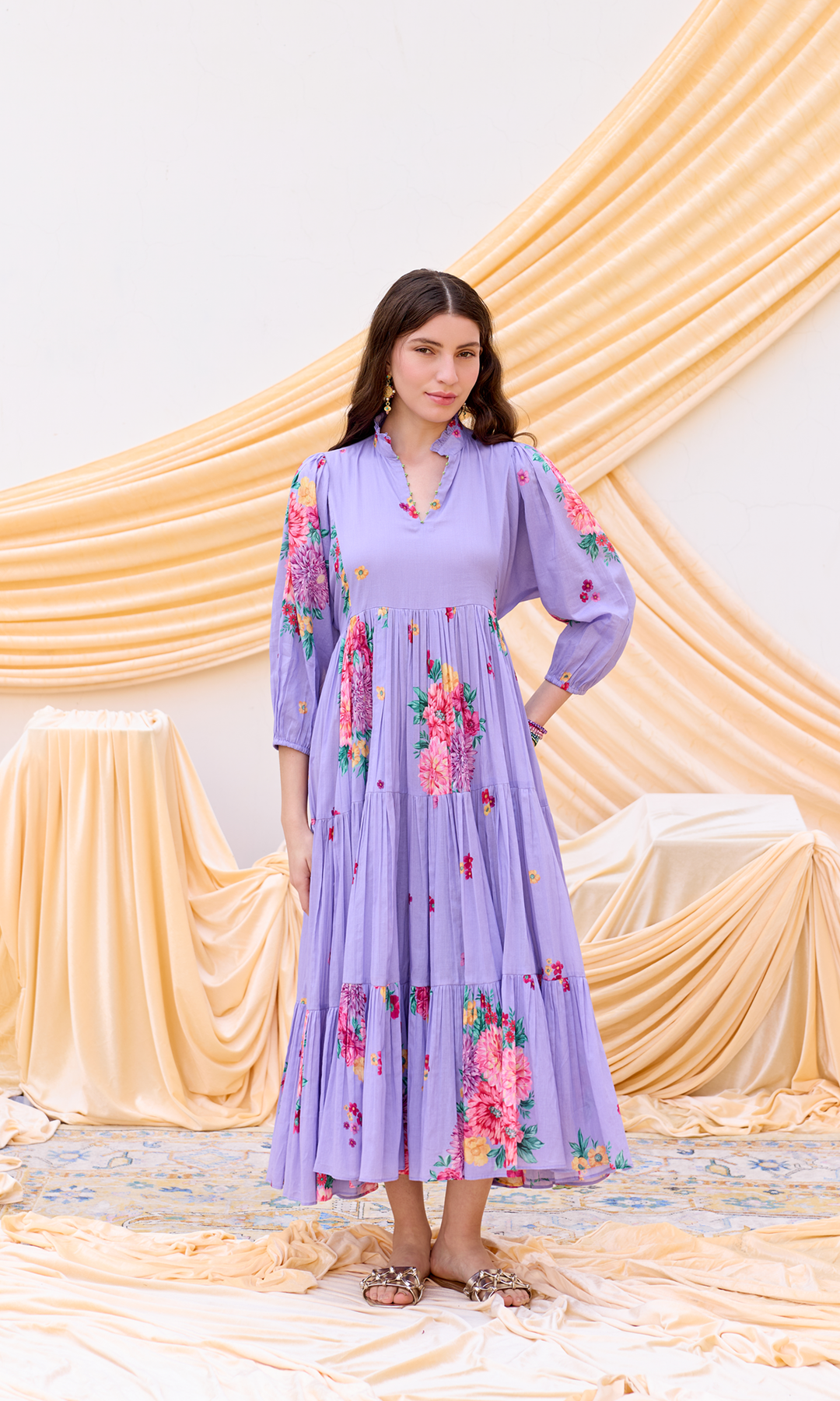 Daphne- Digitally Printed Floral Embroidered Cotton Dress