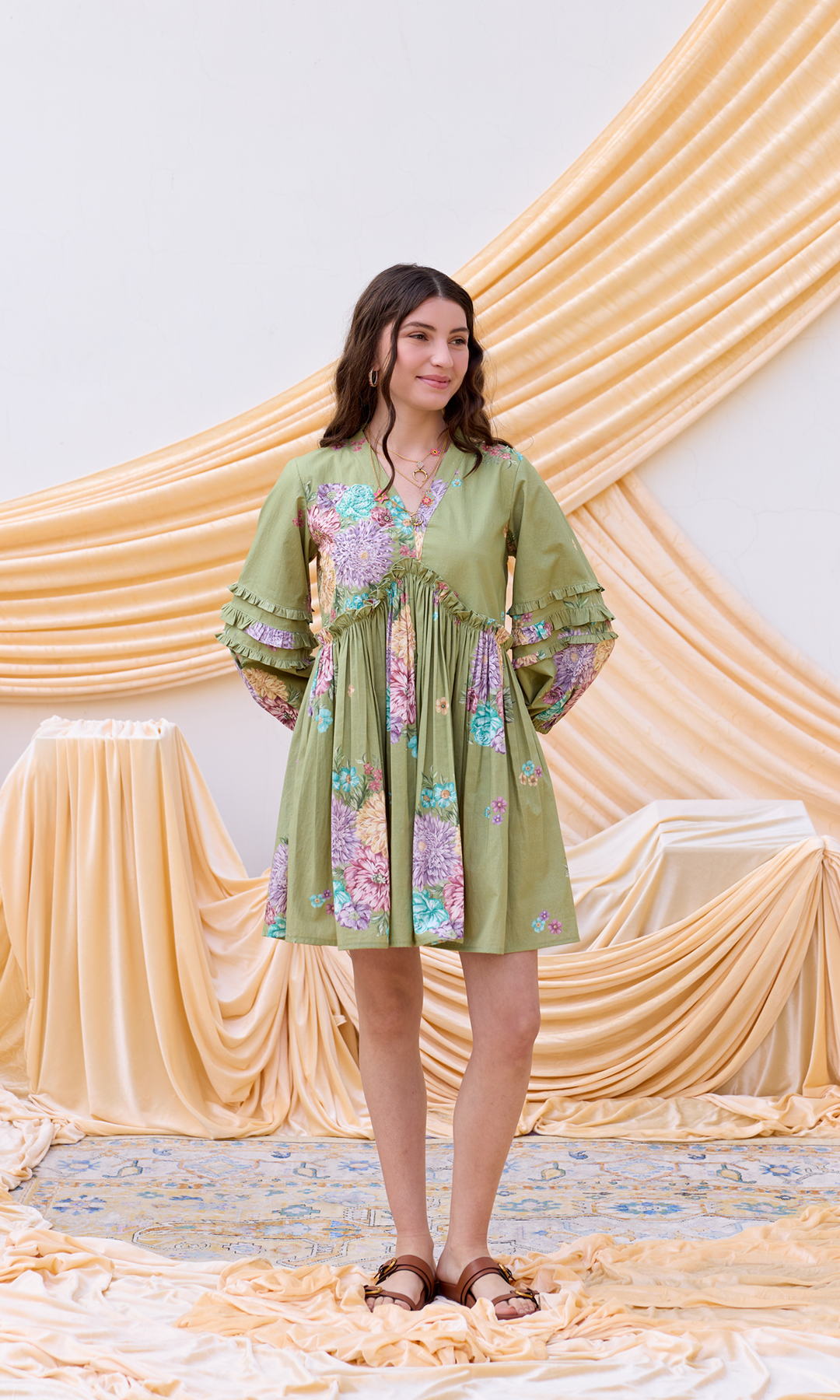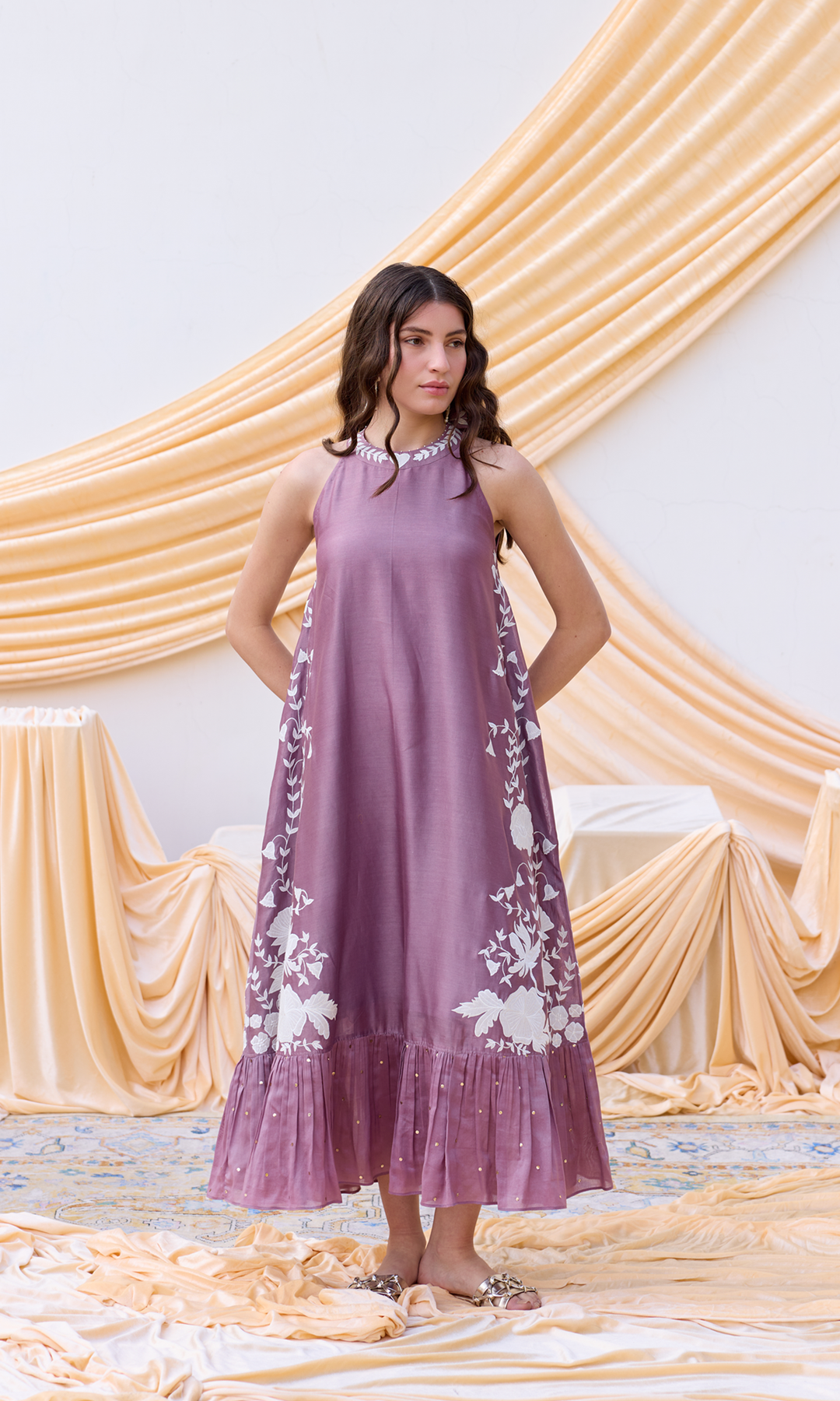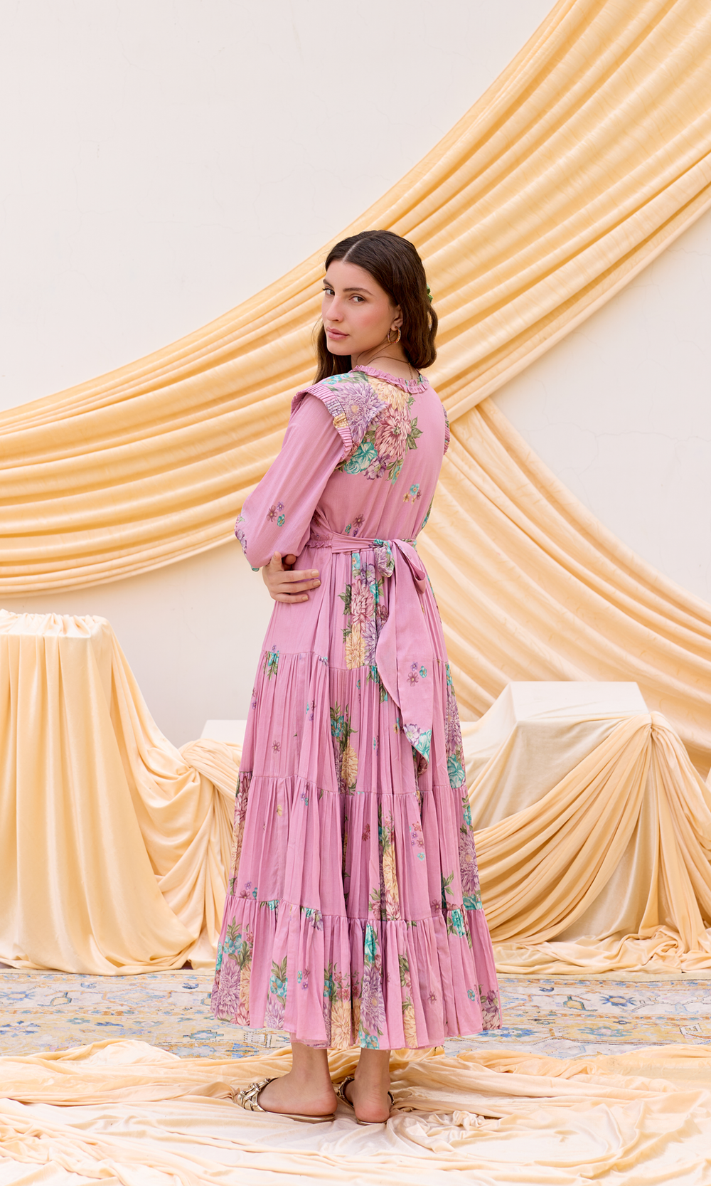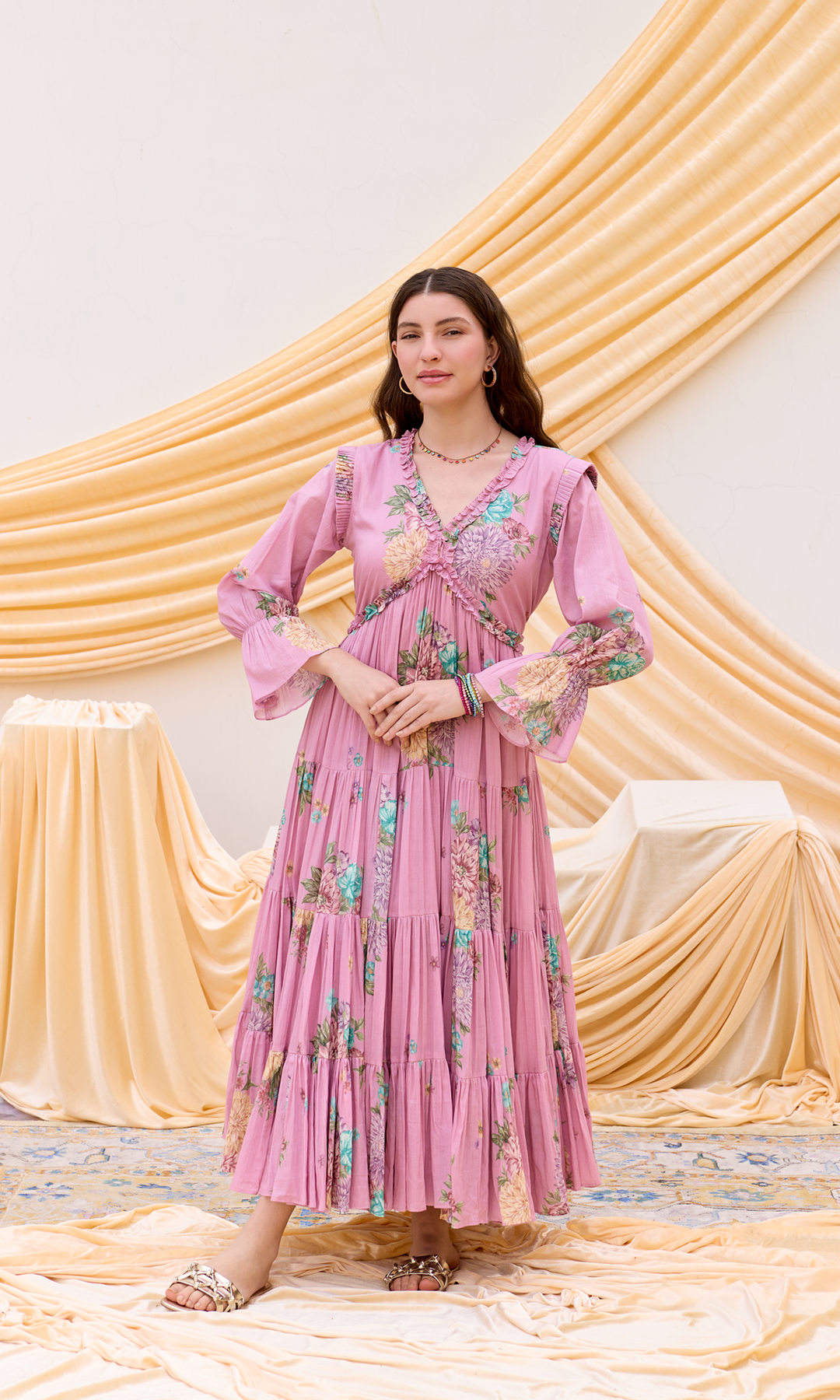 Daphne- Digitally Printed Floral Embroidered Cotton Dress