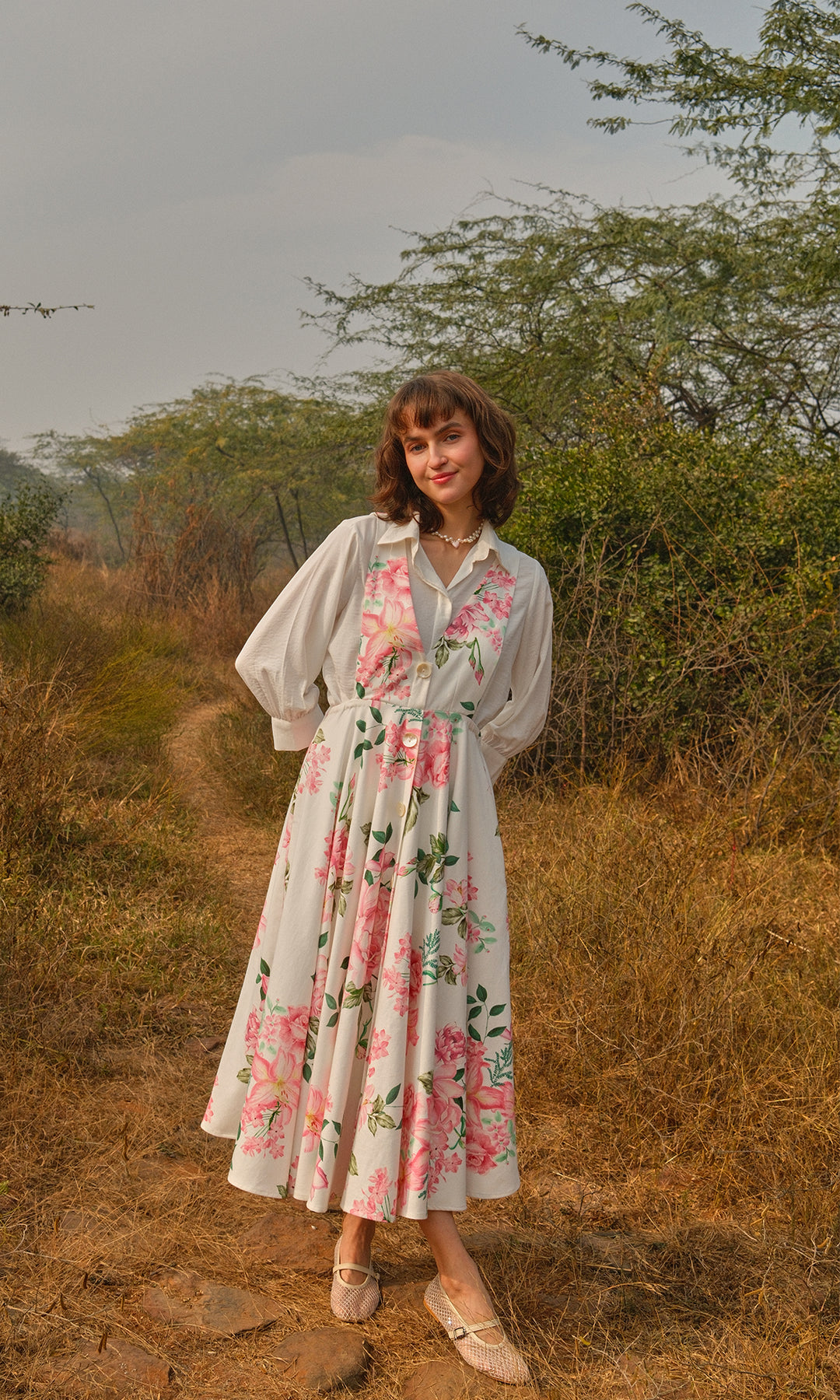 Juniper- Twill dress with digitally printed shirt