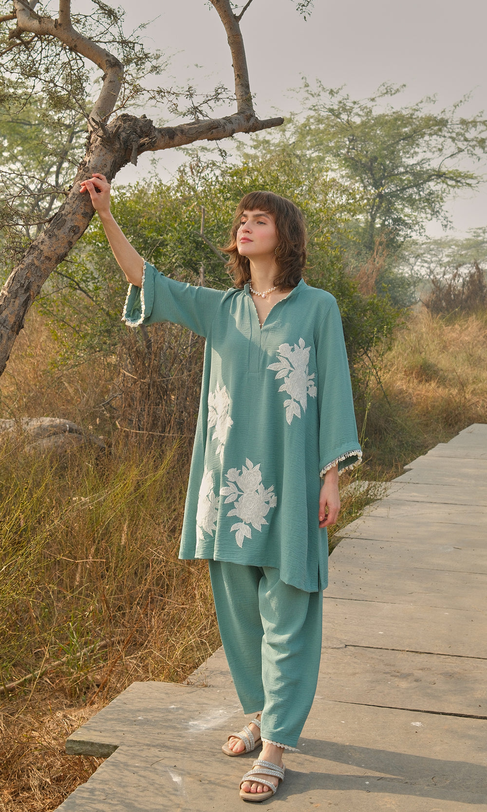 Camellia- Cotton Modal co-ord set with appliqué work
