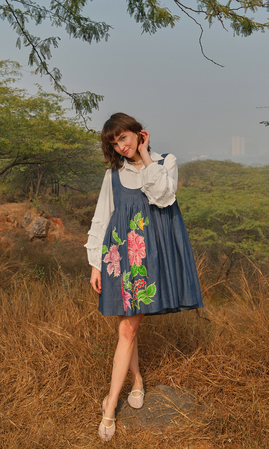 Angelina- Cotton twill dress with white shirt
