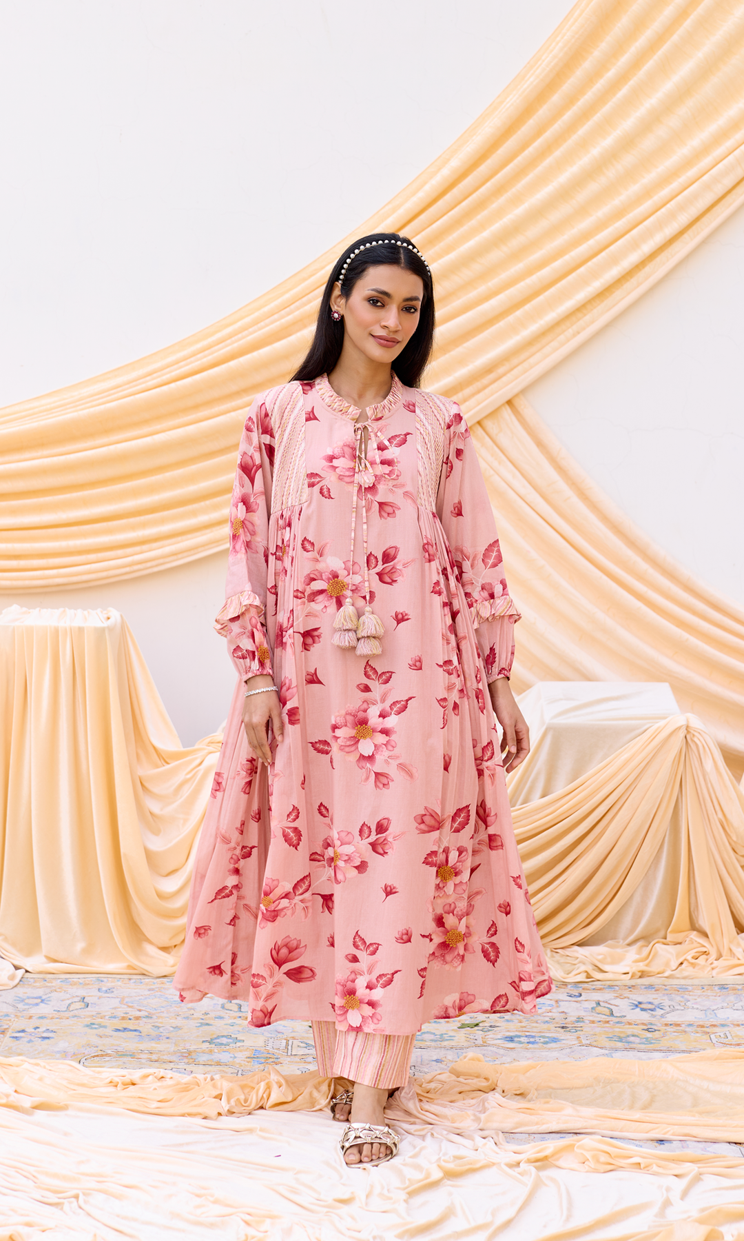 Viola- Digitally Printed Floral Poplin and Mulmul Co-ord Set (Set of 2)