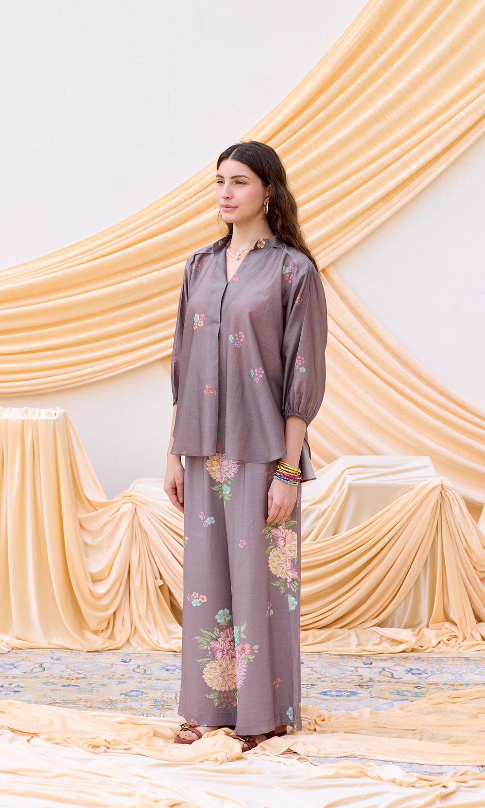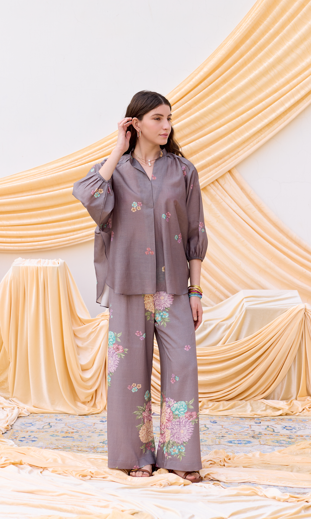 Audrey- Digitally printed Chanderi anti-fit top with buttersilk pants